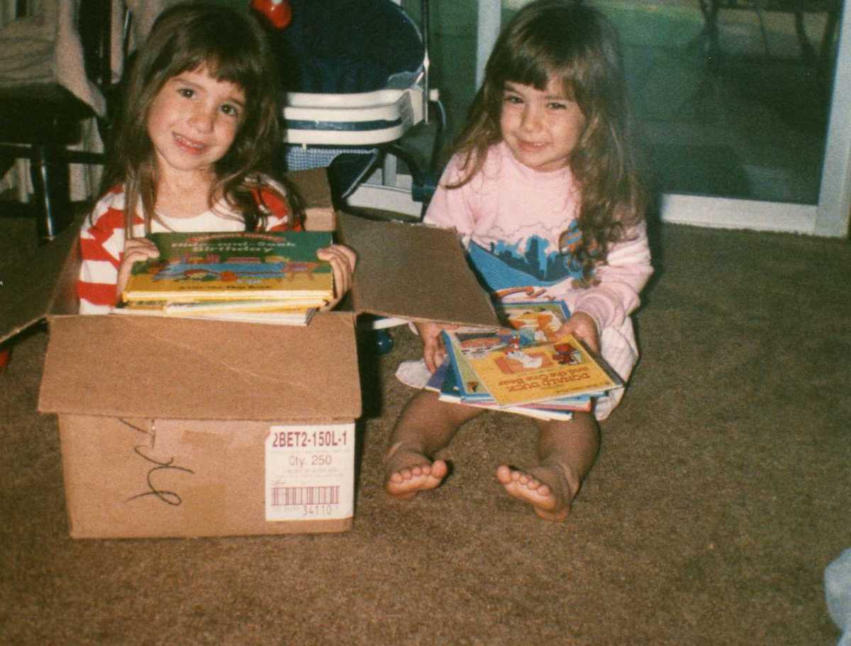 8. A & S BOOKS Published August 29, 2013 at 1272 × 966 in The Best Wedding Party Ever! ← Previous Next → Sarah and Alysse play with books and a box